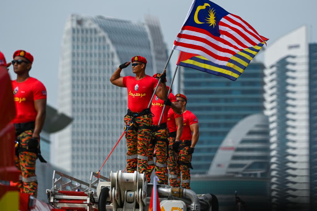 Firefighters attend a celebration of the 66th anniversary of Malaysia's independence in Putrajaya, Malaysia, Aug. 31, 2023. On Aug. 31, 1957, the then Federation of Malaya gained independence from British rule. (Photo by Chong Voon Chung/Xinhua)
