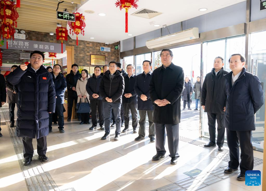 Chinese Vice Premier He Lifeng, also a member of the Political Bureau of the Communist Party of China Central Committee, visits Beiwu Service Area along the expressway linking downtown Beijing and Pinggu District while examining preparations for the Spring Festival travel rush in Beijing, capital of China, Jan. 26, 2024. (Xinhua/Zhai Jianlan)