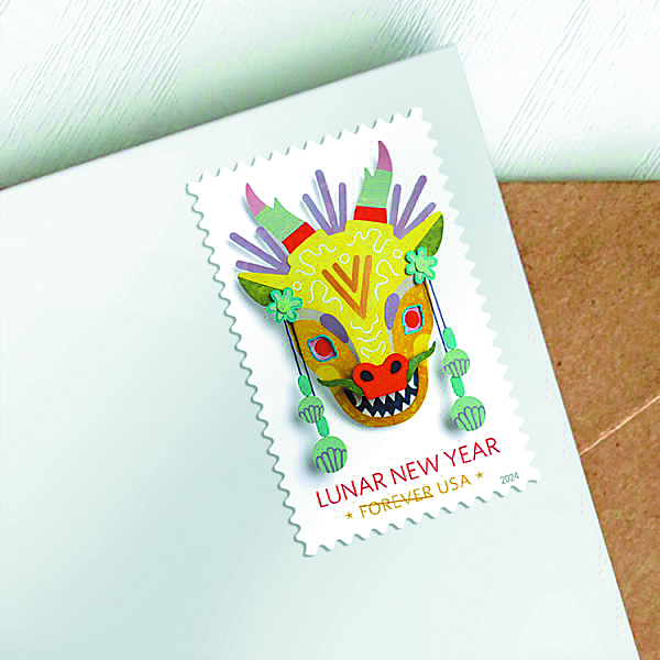 The stamp issued by the United States Postal Service to mark the Year of the Dragon. [PHOTO/CHINA DAILY]