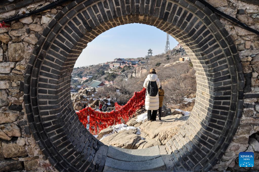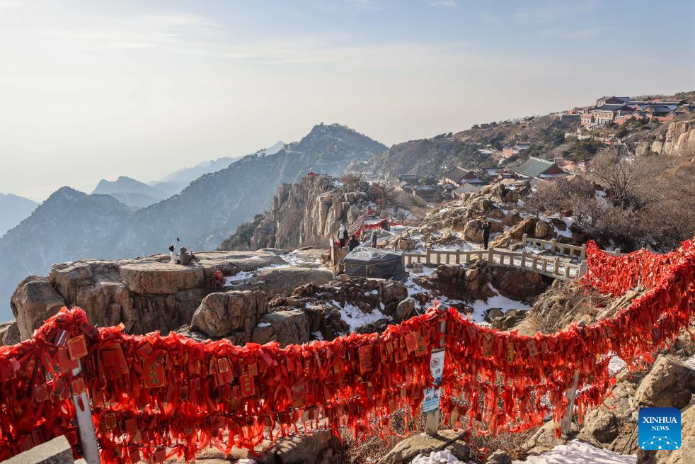 Tourists visit the Mount Tai scenic area in east China's Shandong Province, Jan. 26, 2024. With its natural and cultural values well interconnected, Mount Tai was listed as a World Cultural and Natural Heritage site by UNESCO in 1987, the first ever in China. In 2023, the Mount Tai scenic area received over 8.61 million visitors, a new record over the years. (Xinhua/Zhu Zheng)