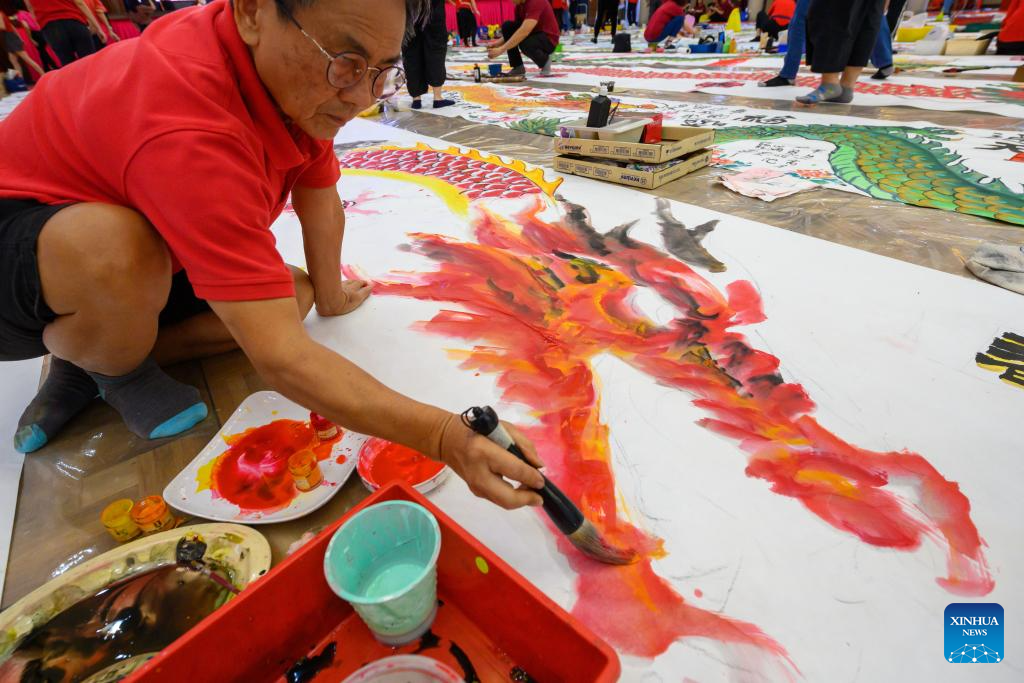 Students in Malaysia create dragon-themed long scrolls for upcoming Chinese Lunar New Year