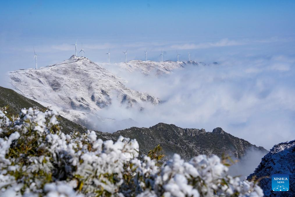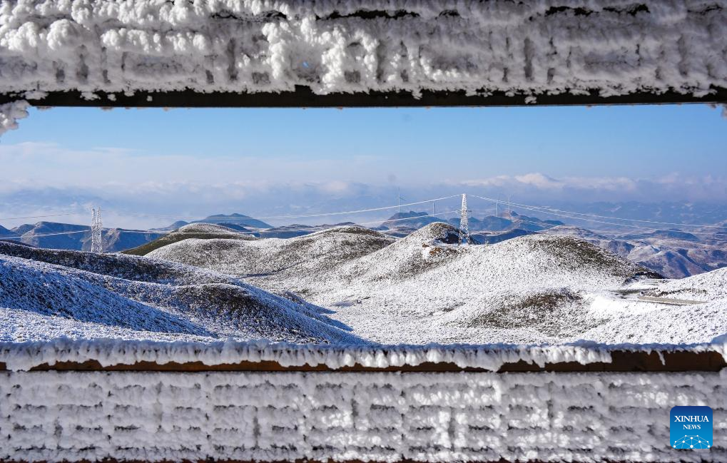 This photo taken on Jan. 29, 2024 shows the scenery after snow at Dajiucaiping scenic area in Hezhang County of Bijie, southwest China's Guizhou Province. (Photo by Chen Chunzhi/Xinhua)