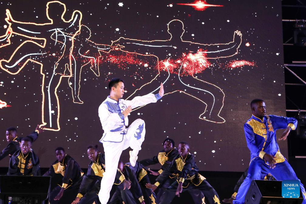 Artists from China and Uganda perform at the Chinese New Year's eve gala in Kampala, Uganda, on Jan. 28, 2024. (Photo by Hajarah Nalwadda/Xinhua)