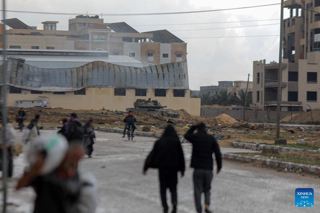 An Israeli tank is seen in the southern Gaza Strip city of Khan Younis, on Jan. 29, 2024. The Hamas-run Health Ministry in Gaza said on Monday that the Palestinian death toll from the Israeli offensive on the enclave has reached 26,637 since it began on Oct. 7, 2023. (Photo by Rizek Abdeljawad/Xinhua)