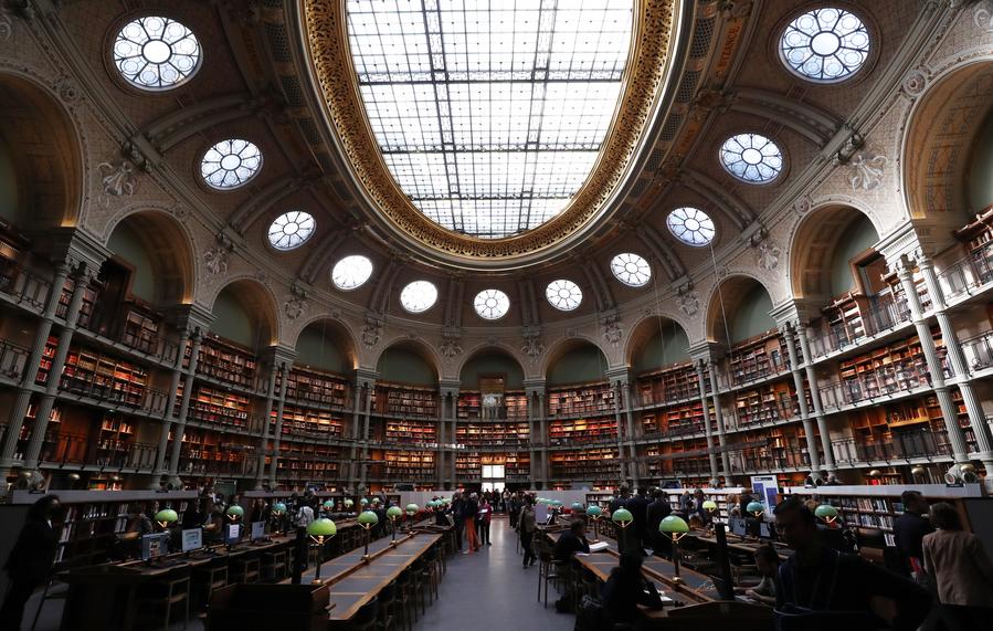 People visit the Oval Room of the Richelieu French National Library in Paris, France, Sept. 17, 2022. (Xinhua/Gao Jing)