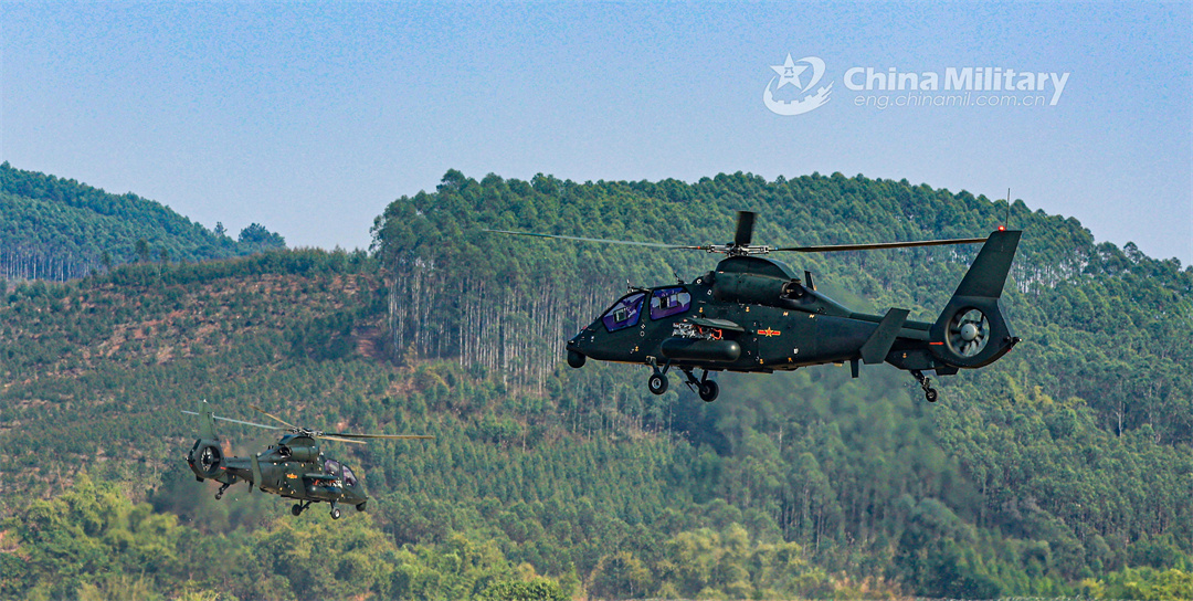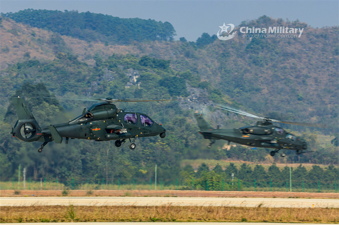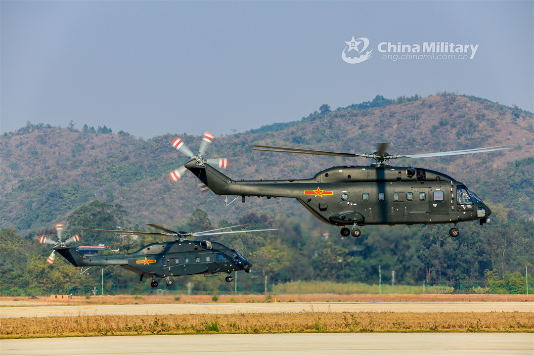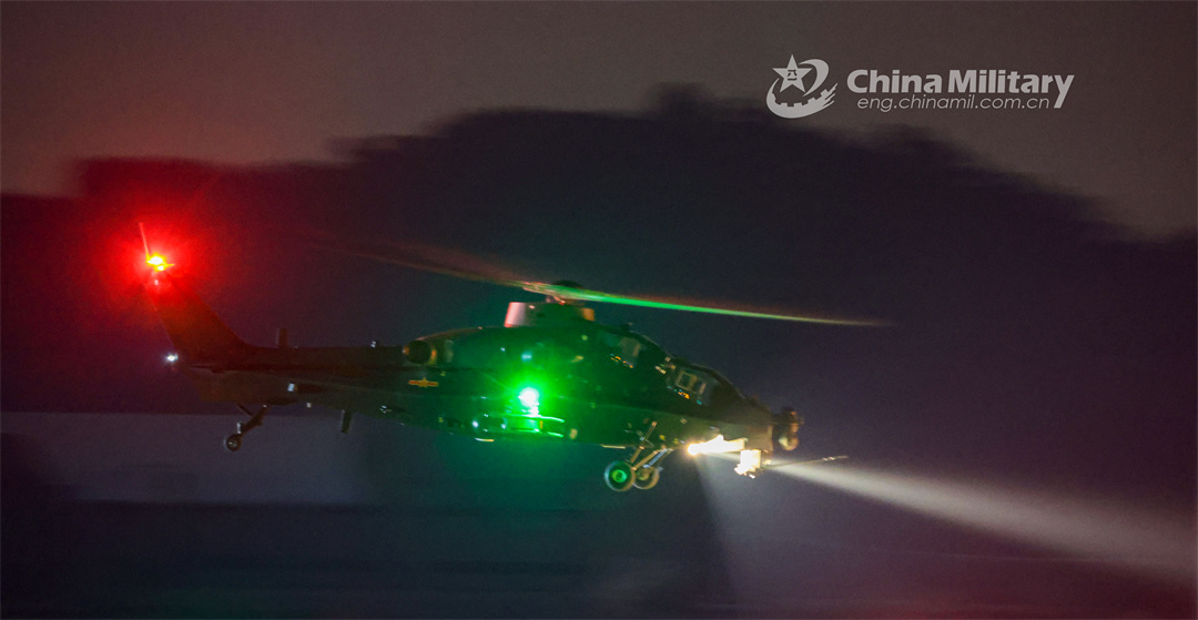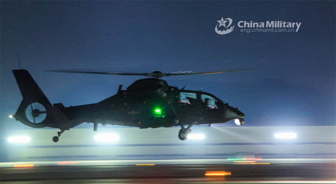 Crews assigned to a brigade with the Chinese PLA Army practice flight skills during a round-the-clock flight training exercise recently. (eng.chinamil.com.cn/Photo by Sun Changyi)