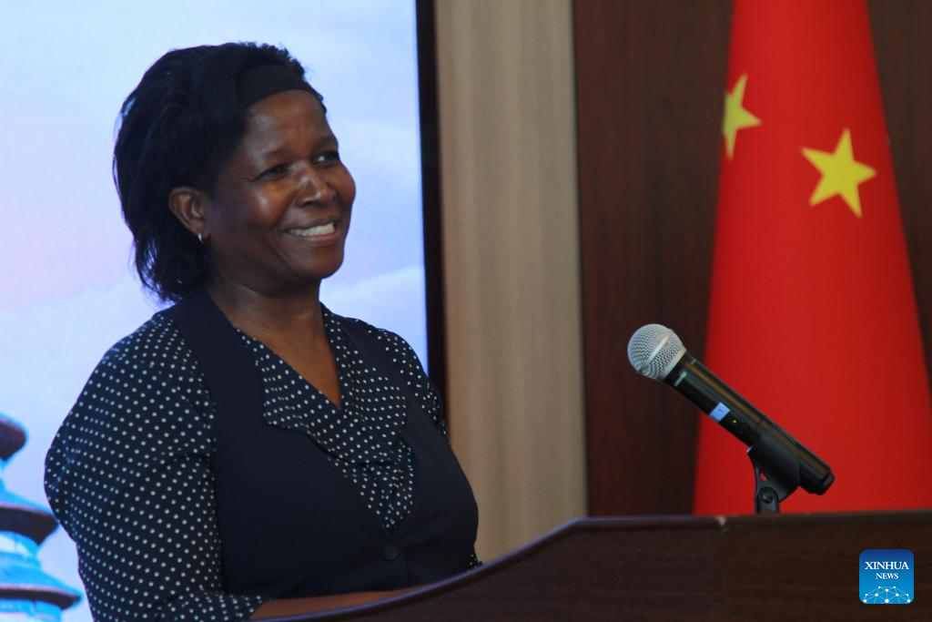 Zimbabwe's Deputy Minister of Public Service, Labor and Social Welfare Mercy Dinha speaks at a reception for the China-Zimbabwe human resources development cooperation at the Chinese Embassy in Harare, on Jan. 29, 2024. Government officials on Monday said cooperation between China and Zimbabwe in skills capacity has enhanced human resources development in the Southern African country. (Xinhua/Tafara Mugwara)
