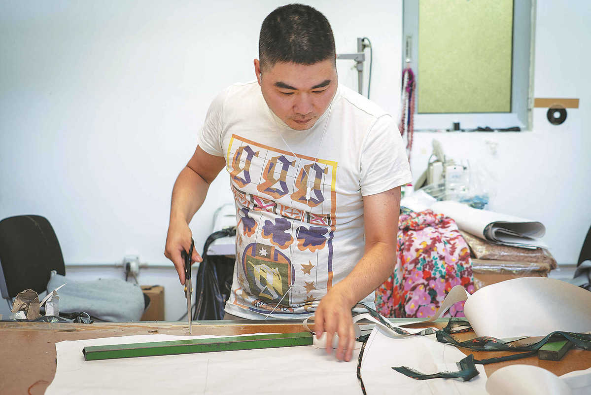 A Chinese man measures materials for fast fashion garments in Prato. DJ CLARK/CHINA DAILY