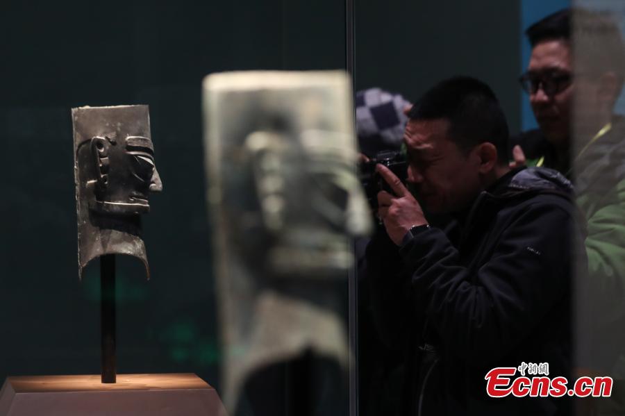 Cultural relics discovered at the Sanxingdui Ruins are exhibited at East branch of the Shanghai Museum, Jan. 29, 2024. (Photo: China News Service/Zhang Hengwei)