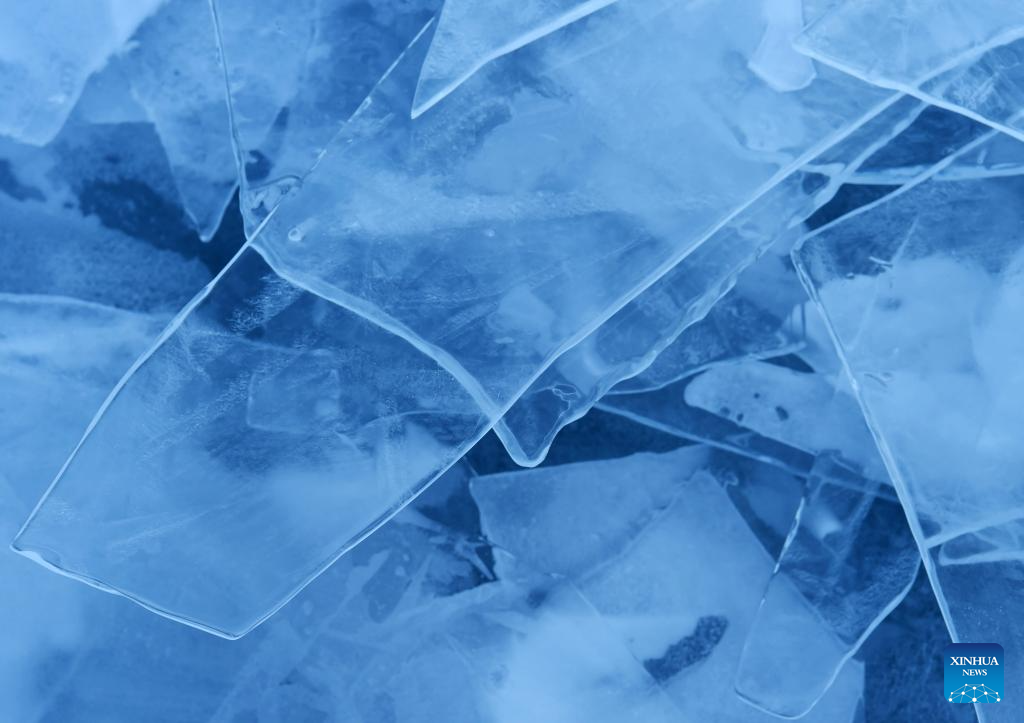 This photo taken on Jan. 29, 2024 shows piled-up ice on the Mapam Yumco Lake in Burang County of Ngari Prefecture, southwest China's Xizang Autonomous Region.?(Xinhua/Guan Minghui)