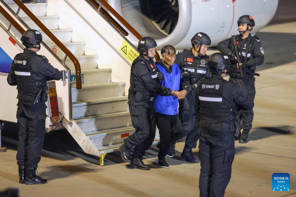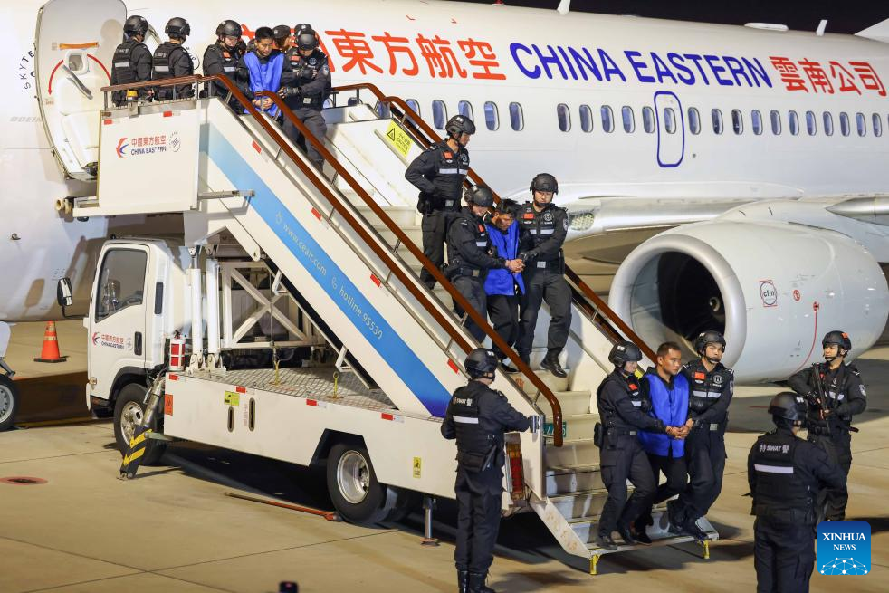 The ten suspects were escorted by Chinese police officers back to China via a charter flight that landed in Kunming on Tuesday evening, the ministry said, adding that it is another landmark achievement of Chinese and Myanmar police cooperation in law enforcement.