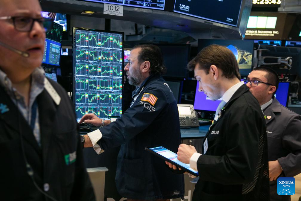 Traders work on the floor of the New York Stock Exchange in New York, the United States, on Jan. 31, 2024. U.S. stocks ended lower on Wednesday. The Dow Jones Industrial Average fell 317.01 points, or 0.82 percent, to 38,150.3. The S&P 500 sank 79.32 points, or 1.61 percent, to 4,845.65. The Nasdaq Composite Index shed 345.89 points, or 2.23 percent, to 15,164.01. (Photo by Michael Nagle/Xinhua)