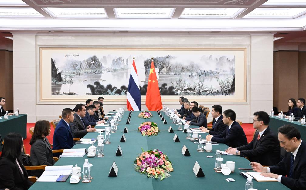 He expressed the hope that China and Thailand will implement the important consensus reached by leaders of the two countries, deepen cooperation on drug control, optimize the cooperation mode of fugitives and asset recovery, carry out joint law-enforcement operations, crack down on crimes such as drug manufacturing and trafficking, telecommunications and internet fraud, and online gambling in accordance with the law, strengthen practical cooperation on law-enforcement and security, and promote the building of a China-Thailand community with a shared future.