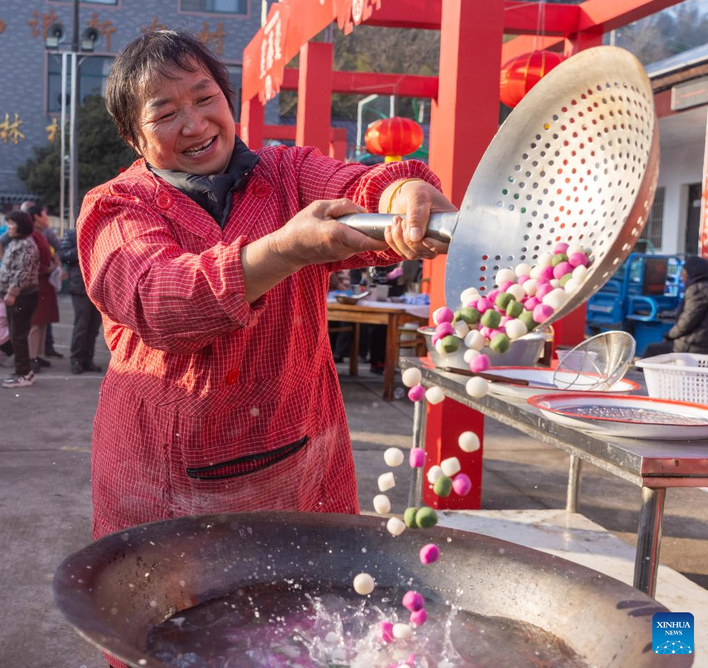 A villager cooks festive sweet dumplings known as "tangyuan" in Zhuji, east China's Zhejiang Province, Jan. 31, 2024. People across China are preparing for the upcoming Spring Festival, the biggest occasion for family reunions, and heralds the beginning of spring. (Photo by Guo Bin/Xinhua)