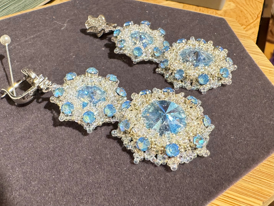 This photo, taken on Jan. 30, 2024, shows a pair of earrings using the Xiamen glass bead embroidery technique, an art form recognized as China's intangible cultural heritage. (People's Daily Online/Wu Chaolan)