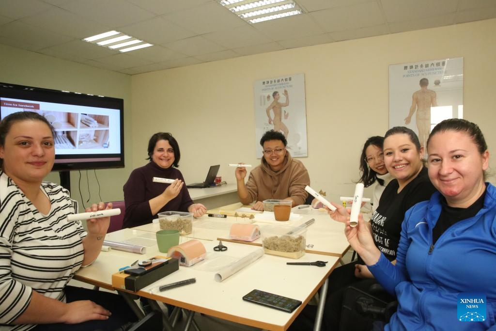 VALLETTA, Feb. 1 (Xinhua) -- Six students from the master's program in traditional Chinese medicine (TCM) and culture at the University of Malta on Thursday participated in a special class to learn the art of crafting moxa sticks used in moxibustion.