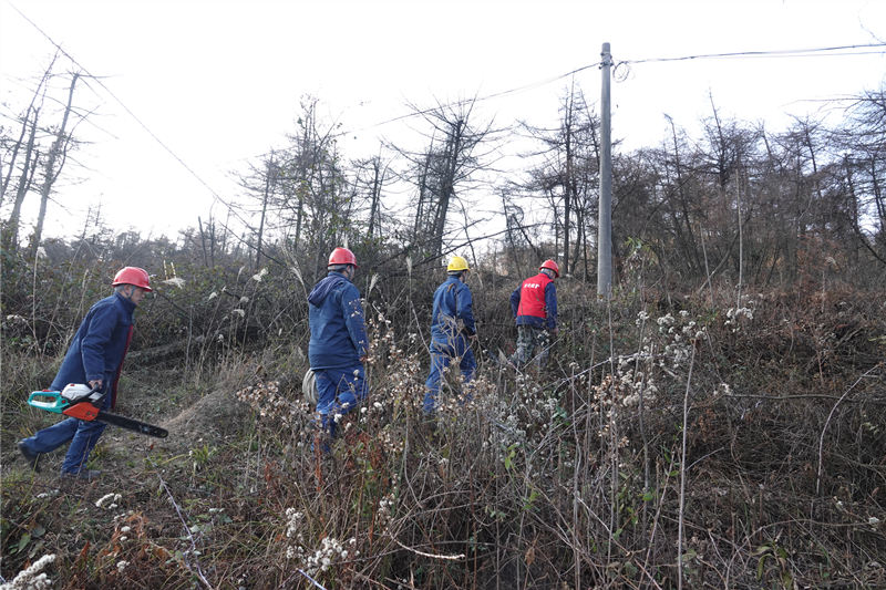 Staff from the State Grid Xiangxi Power Supply Company cleared vegetation and conducted a special patrol on power transmission lines located at an altitude of over 1,200 meters in Xiangxi Tujia and Miao Autonomous Prefecture, central China's Hunan Province, on January 31.