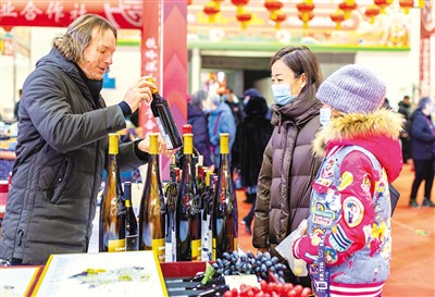 Customers purchase wine from France at a Chinese New Year shopping fair in Hohhot, capital of north China's Inner Mongolia Autonomous Region. (Photo/Ding Genhou)
