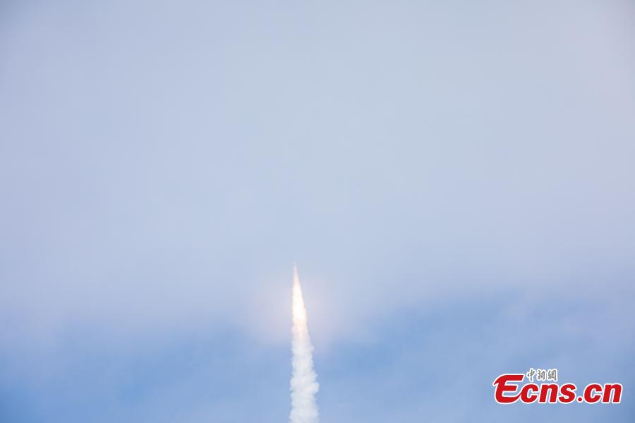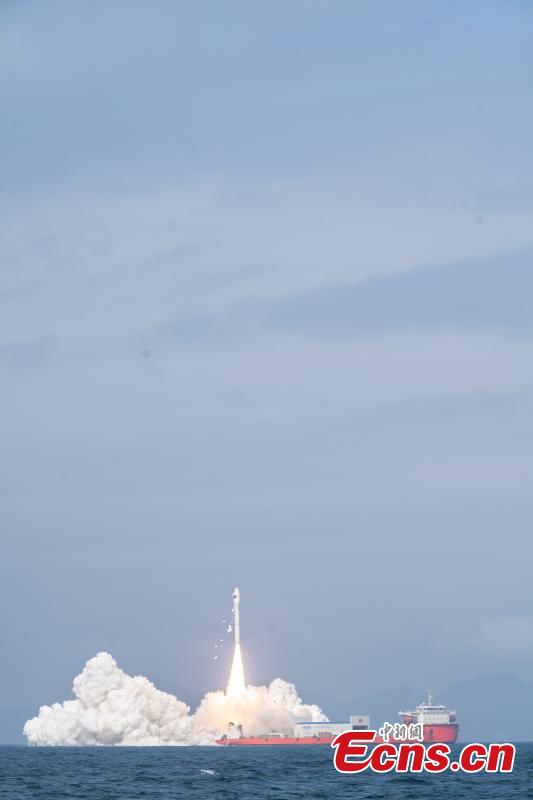 A Smart Dragon-3 carrier rocket carrying nine satellites blasts off from waters off the coast of Yangjiang, in south China's Guangdong Province, Feb. 3, 2024. (Photo: China News Service/An Di)