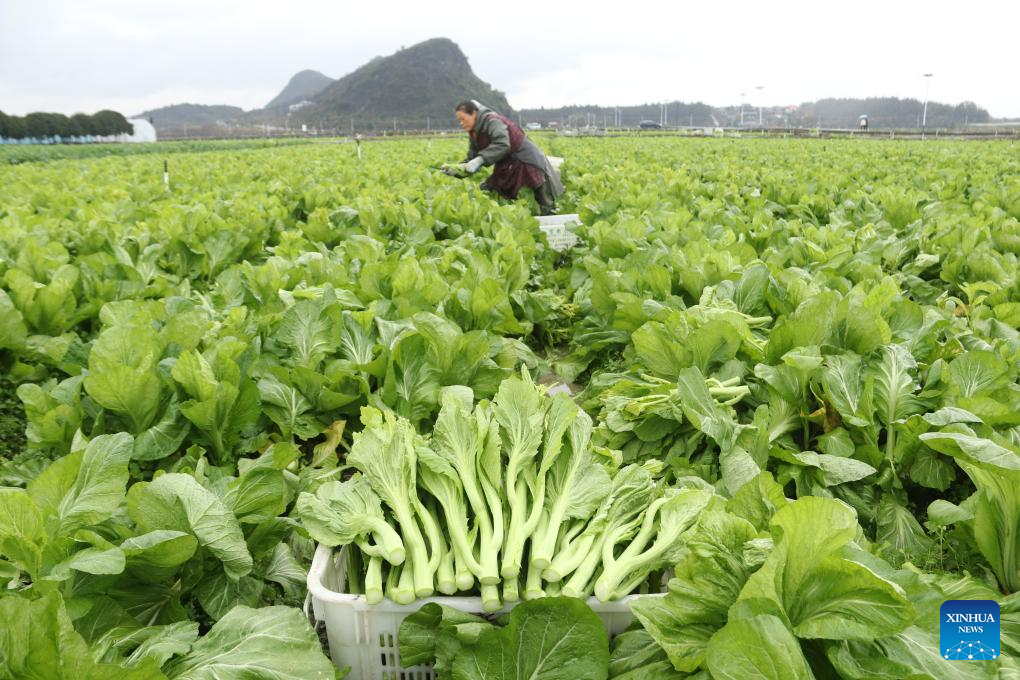 Villagers work in a field in Guandong Town of Congjiang County, Qiandongnan Miao and Dong Autonomous Prefecture, southwest China's Guizhou Province, Feb. 4, 2024. Sunday marks "Lichun", meaning the beginning of spring, the first solar term in the traditional Chinese lunar calendar. (Photo by Lu Zhongnan/Xinhua)