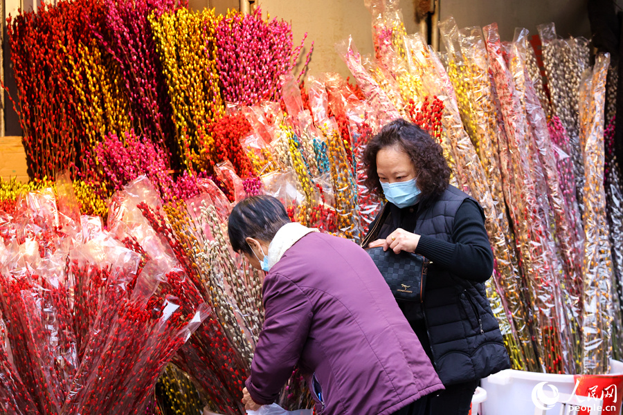 A woman buys rose willow branches at a store in Xiamen city, southeast China's Fujian province. (People's Daily Online/Chen Bo)