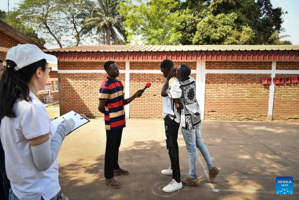 Students participate in a game of sending words in Chinese during a cultural event at the Confucius Institute of Bangui University in Bangui, Central African Republic, Feb. 6, 2024. The Confucius Institute of Bangui University held a cultural event on Tuesday, celebrating the upcoming Chinese Lunar New Year, or the Spring Festival. (Xinhua/Han Xu)