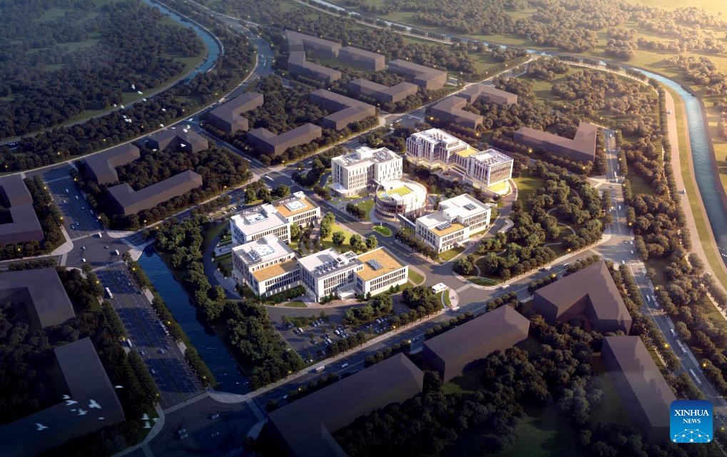 This rendering provided by Peking University shows the multi-modal and multi-scale biomedical imaging project, one of the major national scientific and technological infrastructure, in Huairou Science City in the northeastern suburbs of Beijing, capital of China. (Peking University/Handout via Xinhua)
