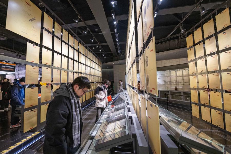 People visit the Exhibition Hall of Evidence of Crimes Committed by Unit 731 of the Japanese Imperial Army in Harbin, northeast China's Heilongjiang Province, Jan. 25, 2024. (Xinhua/Xie Jianfei)