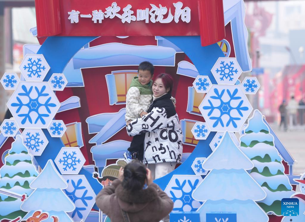 Tourists pose for photos in Shenyang, northeast China's Liaoning Province, Feb. 9, 2024. People across the country held various celebrations on Friday, the Chinese Lunar New Year's eve, to welcome the traditional festival. (Xinhua/Li Gang)