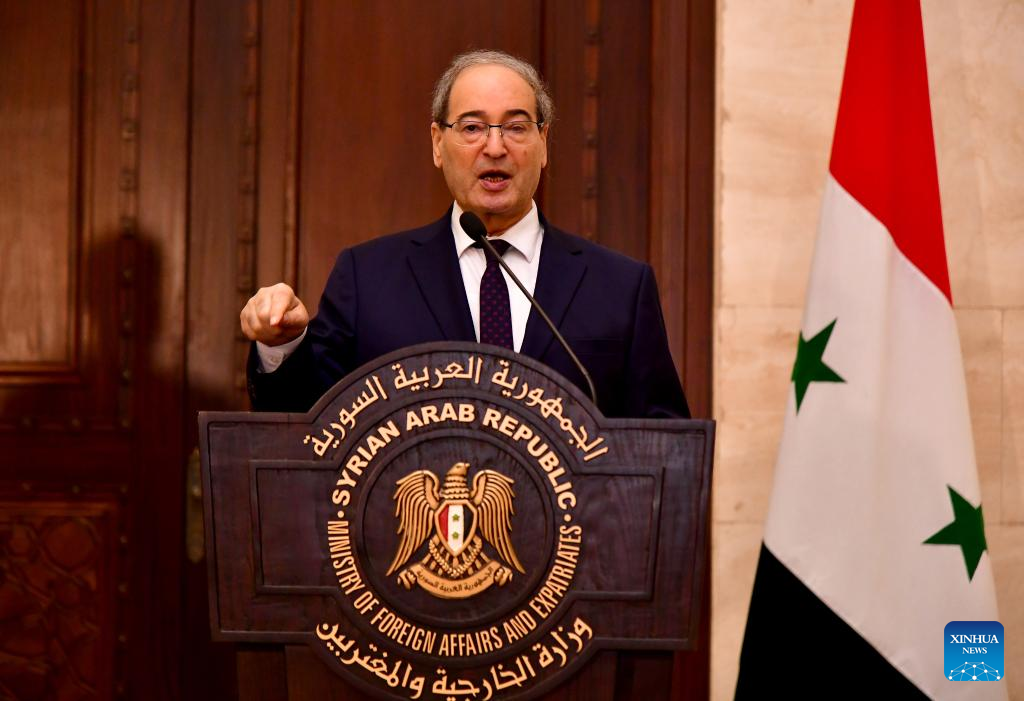 DAMASCUS, Feb. 11 (Xinhua) -- Syrian Foreign Minister Faisal Mekdad reiterated on Sunday that Syria's top priority is to defy the presence of any unauthorized foreign forces on its territory.