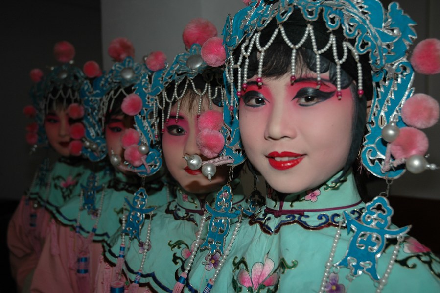 Young actors prepare for Henan Opera performance in Qinyang City, central China's Henan Province during the Spring Festival of 2006.