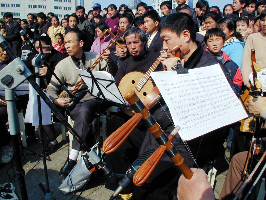 Opera enthusiasts give a performance at a park in Wenling City, east China's Zhejiang Province during the Spring Festival of 2003.