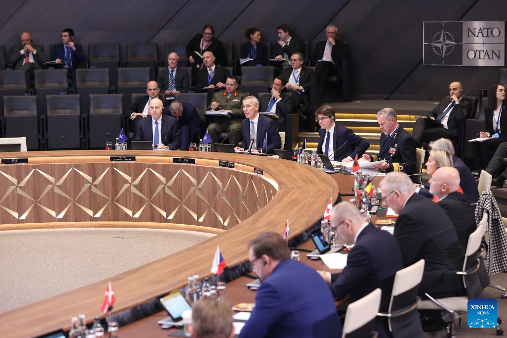 A meeting of NATO defense ministers is held at the NATO headquarters in Brussels, Belgium, on Feb. 15, 2024. The North Atlantic Treaty Organization (NATO) sought to further strengthen the bloc's deterrence and defence, and support to Ukraine, at its defence ministers meeting here on Thursday. (Xinhua/Zhao Dingzhe)