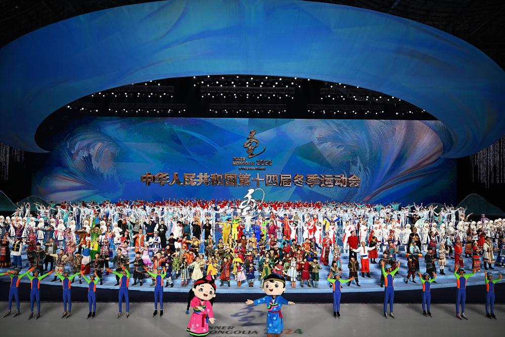 This photo taken on Feb. 17, 2024 shows the opening ceremony of the China's 14th National Winter Games in Hulun Buir, north China's Inner Mongolia Autonomous Region. (Xinhua/Lian Zhen)