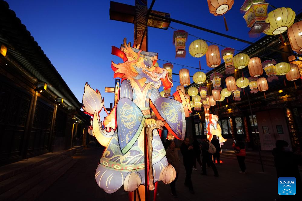 This photo taken on Feb. 16, 2024 shows a lantern show held in Taiyuan Ancient County scenic spot in Taiyuan, north China's Shanxi Province. (Xinhua/Zhan Yan)