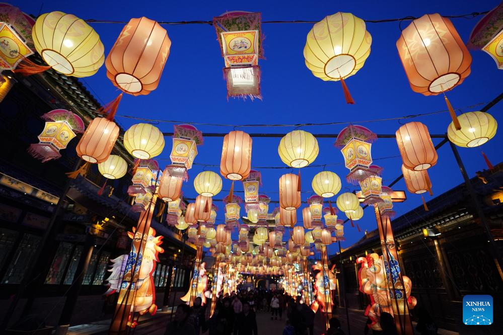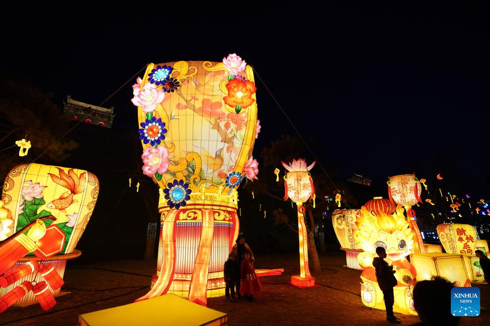 People visit a lantern show held in Taiyuan Ancient County scenic spot in Taiyuan, north China's Shanxi Province, Feb. 16, 2024. (Xinhua/Zhan Yan)