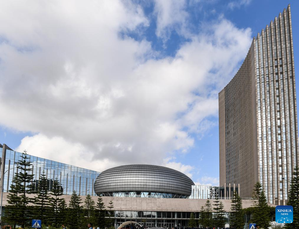 This photo taken on Feb. 17, 2024 shows an exterior view of the African Union (AU) headquarters in Addis Ababa, Ethiopia. The 37th Ordinary Session of the AU Assembly of the Heads of State and Government opened on Saturday at the AU headquarters in Addis Ababa, the capital of Ethiopia. (Xinhua/Li Yahui)