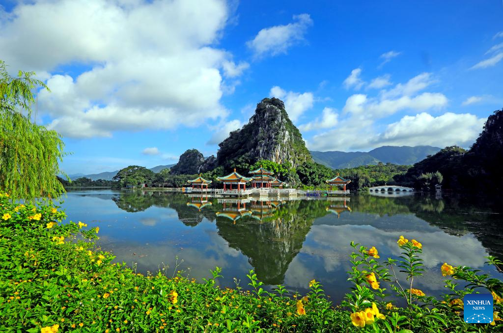 This photo taken on May 27, 2021 shows the scenery of a scenic area in Zhaoqing, south China's Guangdong Province. (Photo by Liu Chunlin/Xinhua)