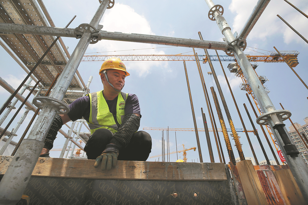 A worker seen at a housing redevelopment project at the Pengyi Community in Shanghai. FANG ZHE/ XINHUA