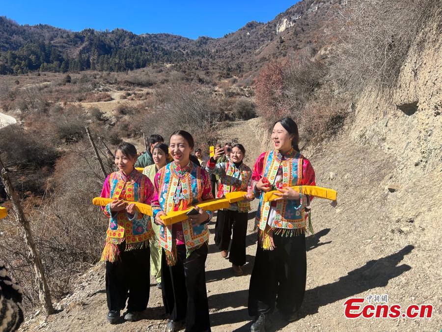 The Tibetan New Year coincides with the Chinese Lunar New Year, or the Spring Festival, which falls on Feb. 10 this year. During celebrations, local Tibetan people perform this traditional dance.