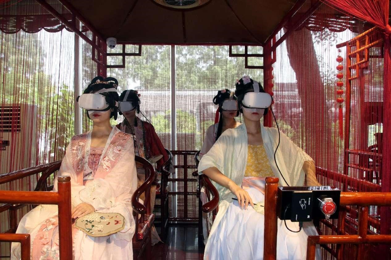 Tourists wear virtual reality headsets to experience the charm of the Humble Administrator's Garden in Suzhou, east China's Jiangsu province. (People's Daily Online/Wang Jiankang)