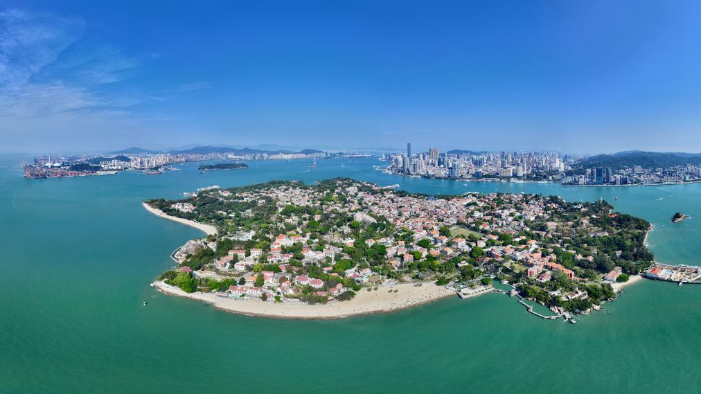 An aerial panoramic drone photo taken on Jan. 24, 2024 shows Gulangyu Island and its surroundings in Xiamen, southeast China's Fujian Province.(Xinhua/Jiang Kehong)