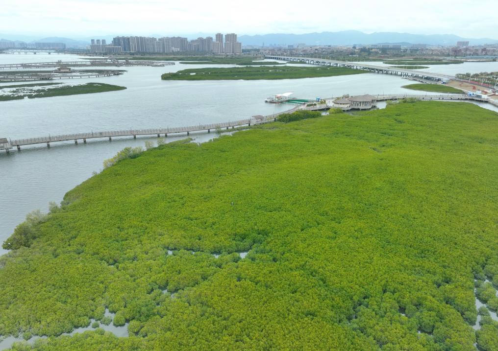 An aerial drone photo taken on Jan. 23, 2024 shows a park of Mangroves in Xiang'an District of Xiamen, southeast China's Fujian Province.(Xinhua/Lin Shanchuan)