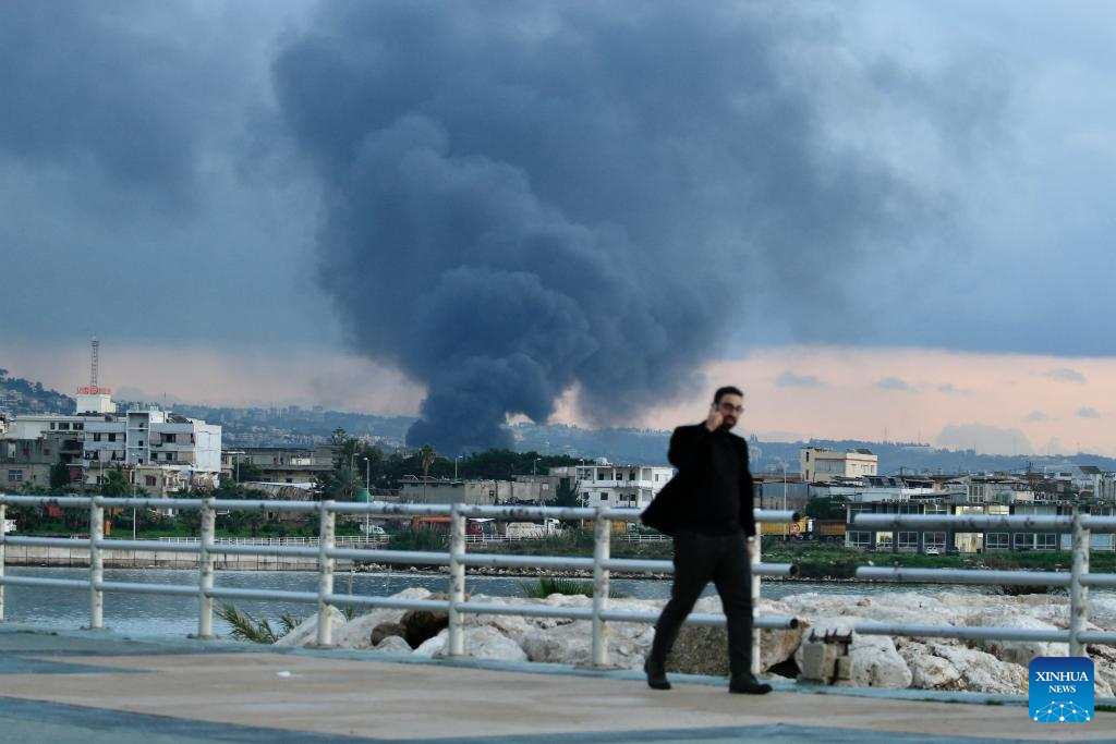 Smoke rises after Israeli airstrike in Ghazieh, Lebanon, on Feb. 19, 2024. Israeli warplanes on Monday afternoon hit multiple targets in the southern town of Ghazieh with air-to-surface missiles, injuring 14 people, Lebanese military sources told Xinhua. (Photo by Ali Hashisho/Xinhua)