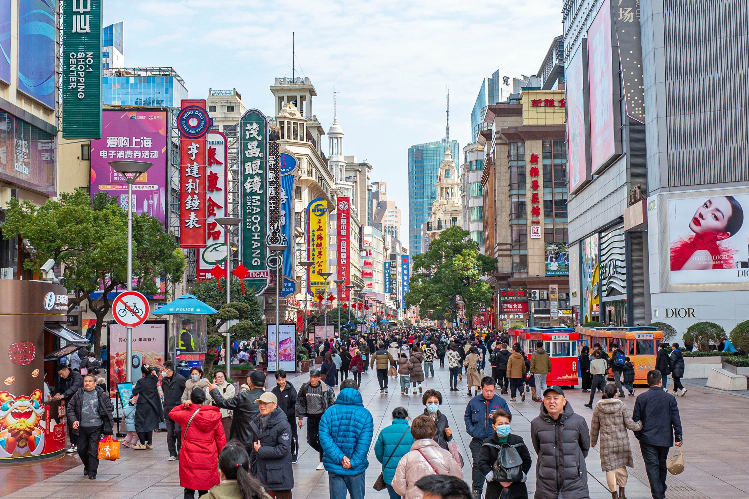 Photo taken on Feb. 17, 2024 shows the crowded Nanjing Road Pedestrian Street in Shanghai. (People's Daily Online/Wang Chu)