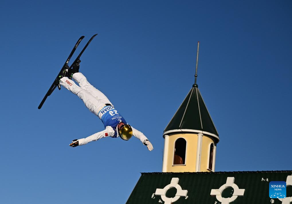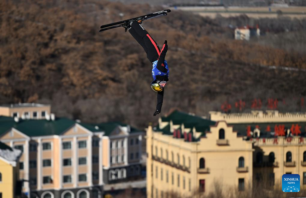 Jia Zongyang of Liaoning competes during the men's aerials competition at the 14th National Winter Games in Hulun Buir, north China's Inner Mongolia Autonomous Region, Feb. 21, 2024. (Xinhua/Yang Guanyu)