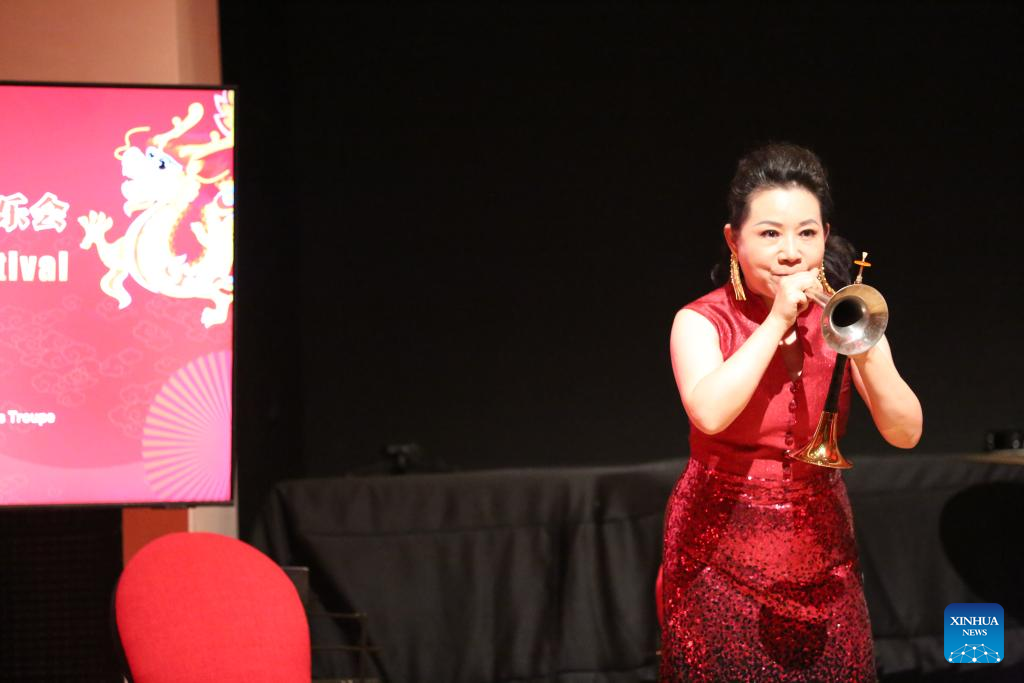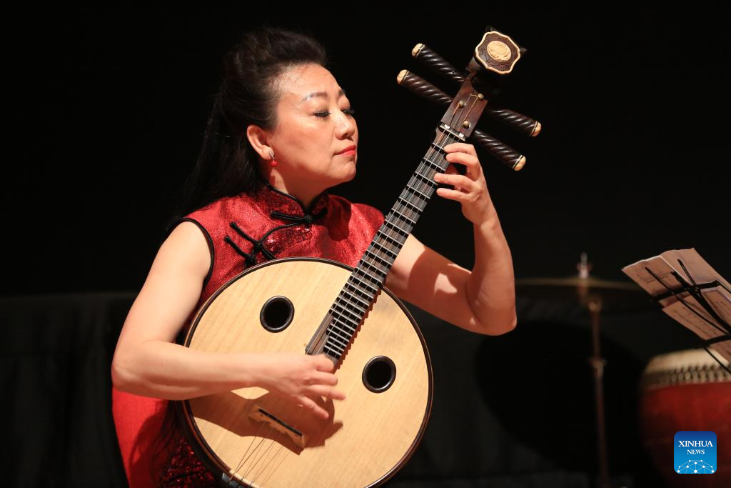 A Chinese artist performs during a Chinese Lantern Festival concert in Valletta, Malta, on Feb. 21, 2024. A concert for the Chinese Lantern Festival was held at Malta's China Cultural Center on Wednesday night, featuring classic Chinese songs such as "Give Me a Rose," "Nocturnal Peace," and "Moonlight over the Spring River." (Xinhua/Chen Wenxian)