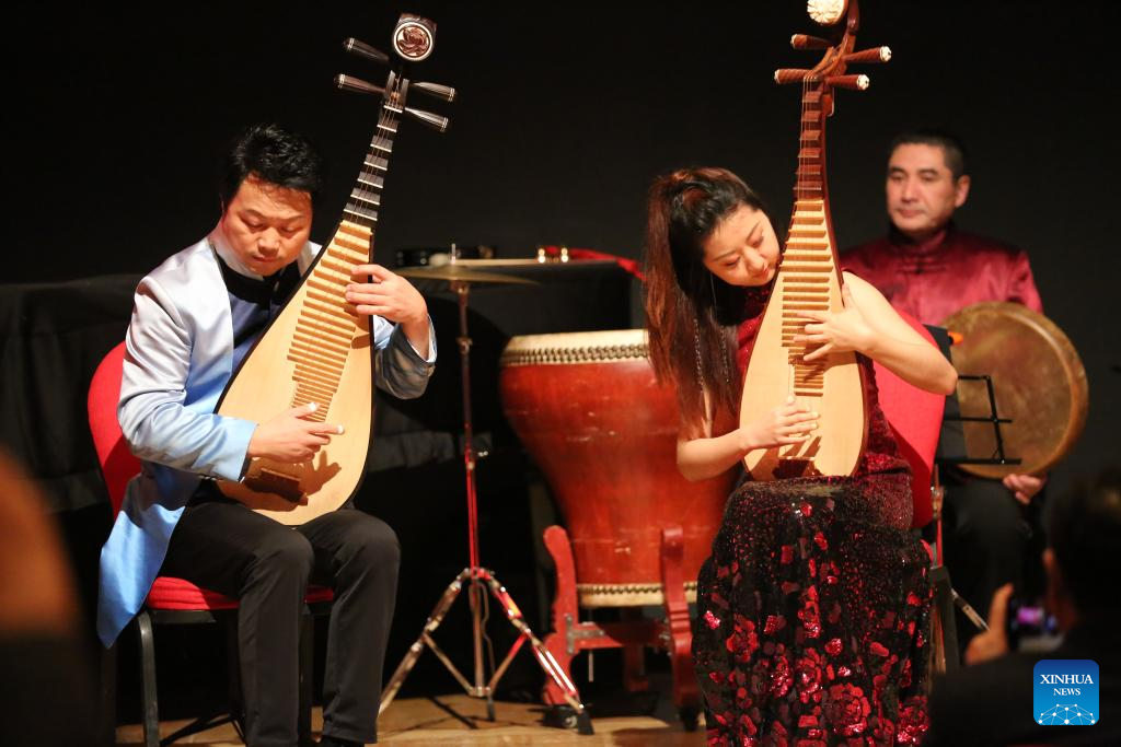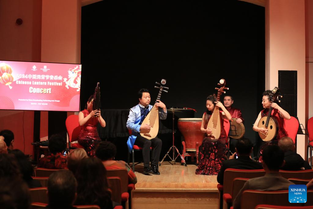 Chinese artists perform during a Chinese Lantern Festival concert in Valletta, Malta, on Feb. 21, 2024. A concert for the Chinese Lantern Festival was held at Malta's China Cultural Center on Wednesday night, featuring classic Chinese songs such as "Give Me a Rose," "Nocturnal Peace," and "Moonlight over the Spring River." (Xinhua/Chen Wenxian)