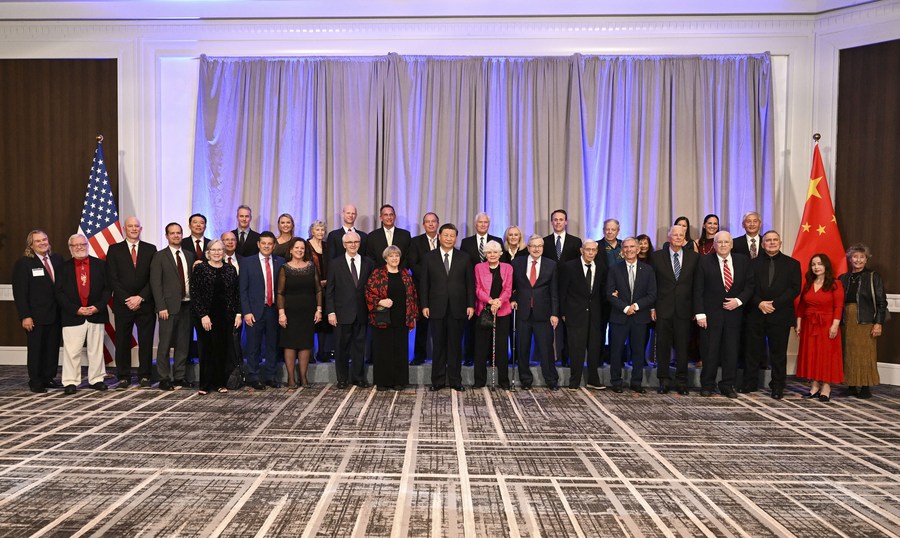 President Xi Jinping meets and poses for a group photo with representatives of friendly personages before attending Welcome Dinner by Friendly Organizations in the United States, in San Francisco, the United States, Nov 15, 2023. [Photo/Xinhua]