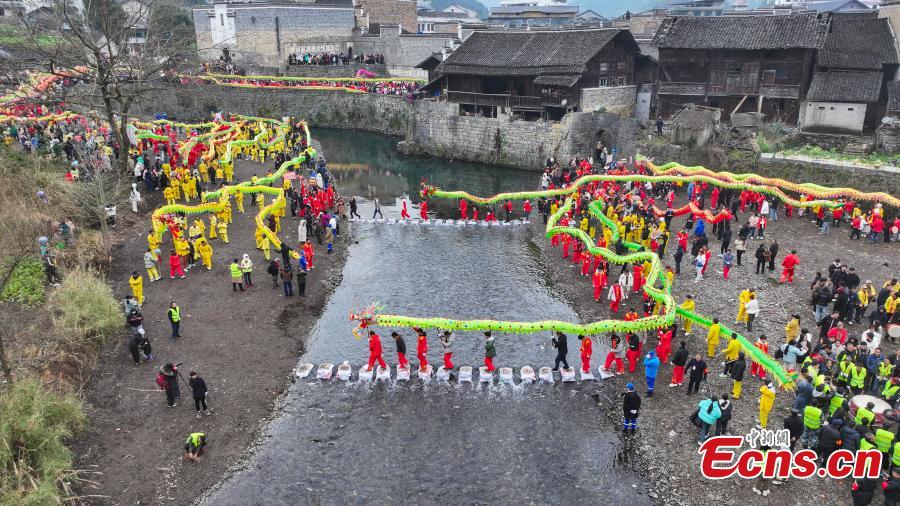 A total of 48 hand-made dragons participated in the Gunlong Festival on Thursday. The folk festival, which has a history of more than 600 years, is a local tradition to wish for good fortunes in the new year.